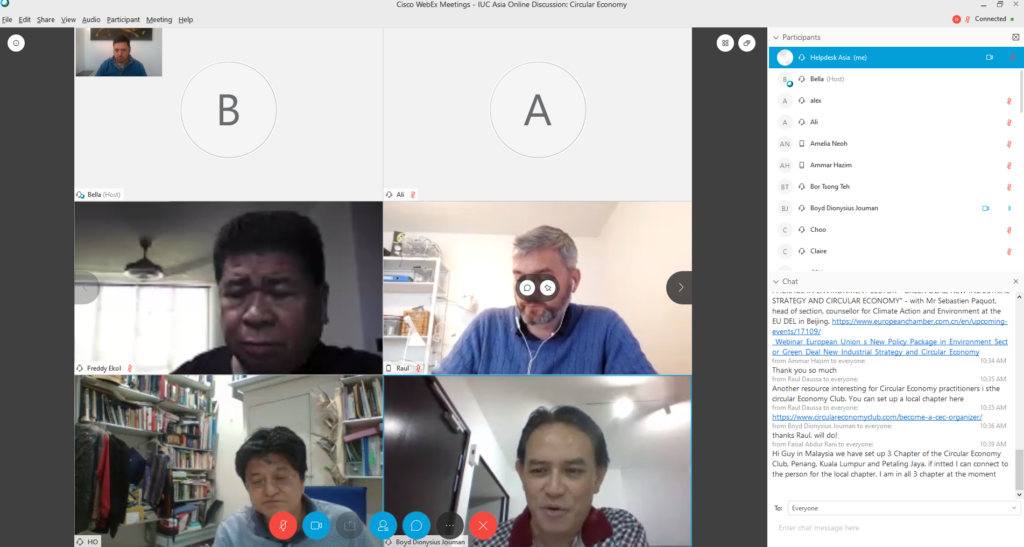 Today’s discussion is part of the new series of thematic discussion rounds online, proceeding to support development of the circular economy in light of the travel limitations resulting from COVID-19 measures. On the concerted effort to pursue sustainable urban development, circular economy grows to be an attractive alternative to our current environmentally-destructive economy model of making-using-disposing. It is a model which involves sharing, leasing, reusing, repairing, refurbishing and recycling existing materials and products as long as possible. This directly addresses the issue of waste management and ultimately, could significantly reduce the grave environmental impacts of our current production and consumption pattern.